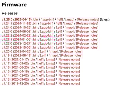 Si no lo has descargado del enlace de arriba hazlo ahora, lo necesitamos para flashear (borrar y grabar de nuevo) el esp32. Verás que lo primero que te aparece son las instrucciones, pero si sigues bajando verás que llegas al firmware. Descarga la última versión disponible (latest).