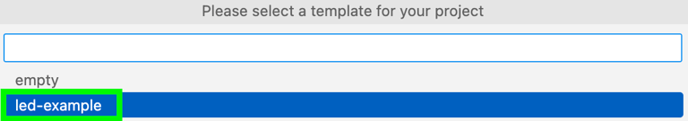 Para este primer ejemplo, vamos a elegir la plantilla que viene por defecto con un código que tenemos que modificar (no viene preparado para esta placa) pero por lo menos no empezamos sobre vacío, que normalmente, suele ser más abrumador.
